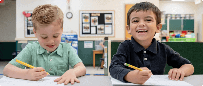 Intermediates 3-4 years Home / Programs / Intermediates (3-4 yrs) Inspiring Curiosity Daily Beginners (2-3 yrs) Intermediates (3-4 yrs) Pre-K Kindergarten Curious Minds at Work Three-year-olds enjoy a classroom full of activities that spark their imagination and curiosity. They have so much fun that they do not even realize that they are learning new skills! Social interactions are a big part of our program. Your child will practice taking turns, sharing, and understanding their own emotions, as well as those of their friends. These skills help to build strong friendships and good communication in our students. We are also proud to teach our students to appreciate diversity. We invite them to celebrate and accept people who may be similar or different from themselves. This helps to build a positive and inclusive view of the world. Schedule a Tour Students Will Enjoy: Storytime to build vocabulary and understanding. Math lessons on using graphs and number lines. Art projects to inspire imagination. Science experiments to make predictions, test ideas, and explore how things work. Links to Learning in our Intermediate Classroom: Language & Literacy Our teachers ask our students to share their ideas and listen to each other. Through this, our students gain more confidence in speaking in front of others. They work with letter sounds and explore characters and plot lines in books. Mathematical Thinking Our students sort, compare, and use simple graphs and number lines. These math skills make numbers fun and relatable! They give our students a strong foundation in math. Social-Emotional Learning Our students learn to follow directions, take turns, and make friends. Play helps them understand their feelings and learn to speak with friends. They build the strong social and emotional skills that they will need for kindergarten and beyond. Wellness Our students develop their fine motor skills by working with their hands. They improve their balance through movement activities. Stretching, running, and dancing help them feel strong and confident. Creative Expression Through art and music, our students explore textures, colors, and sounds. We teach them about artists and musicians and inspire them to express themselves in new ways. Scientific Exploration In science, our students learn by observing, predicting, and exploring changes. They see cause and effect in action! These activities spark their curiosity and get them excited for learning. Citizens of the World We introduce our students to the idea of diversity. They grow to accept and appreciate others who may look, speak, or live differently. They also start to understand that each family is unique. They learn that these are some things that make our world more interesting.